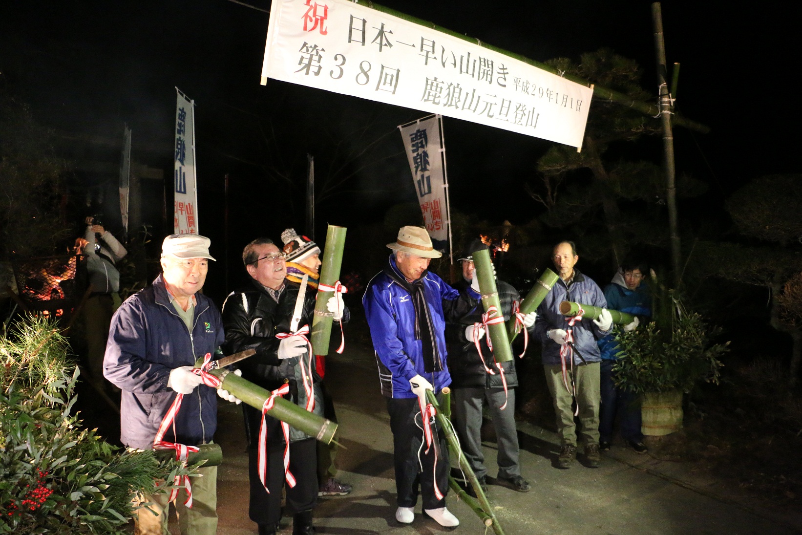 新地町観光協会及び鹿狼山元旦登山実行委員会では、平成29年1月1日(日曜日・祝)に町のシンボルである鹿狼山において、日本一早い山開き及び第38回鹿狼山元旦登山を開催しました。